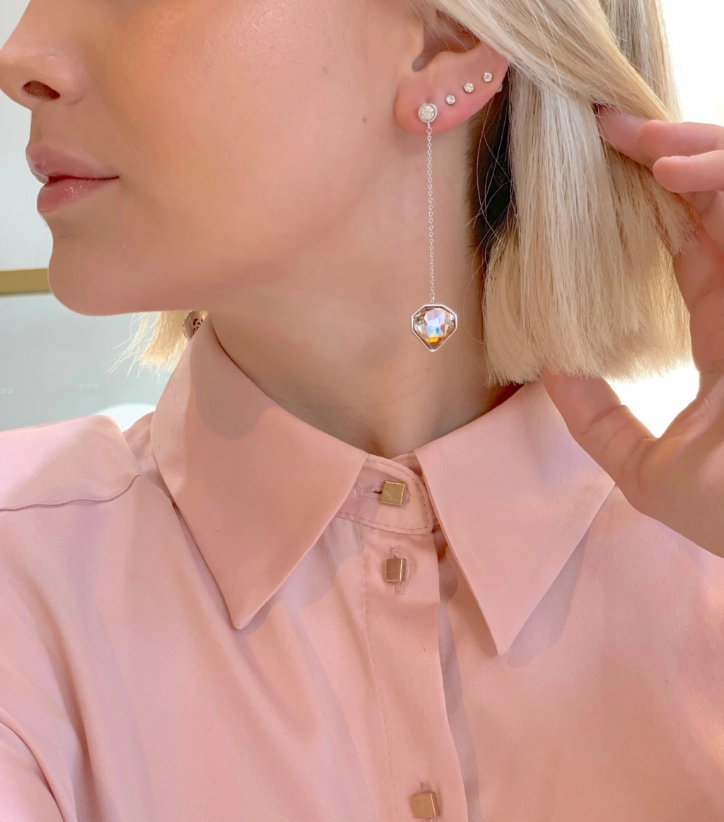 Dentro de los nuevos pendientes colgantes de esta bella colección nos encontramos con estos bellos cristales EXCLUSIVOS en tonos ambar y cristal, su forma es única y tan clásica que se puede adaptar tantoa un look de día como de noche.