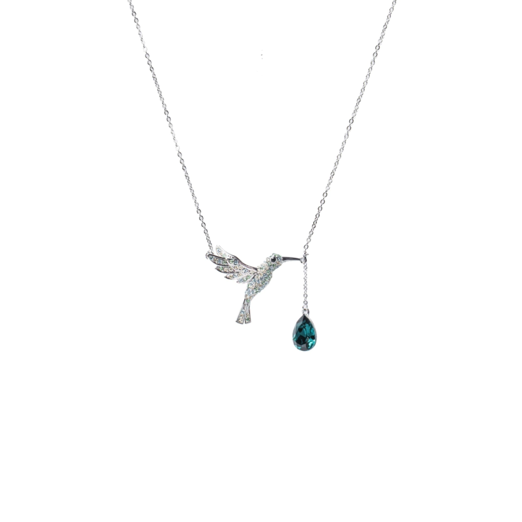 Este imponente collar confeccionado con cristal Swarovski con forma de colibrí será tu nuevo preferido, delicado como ninguno, con un degrade maravilloso de colores en cristal Pavé Swarovski en sus dos variantes de color ( MONTANA-BURGUNDY).