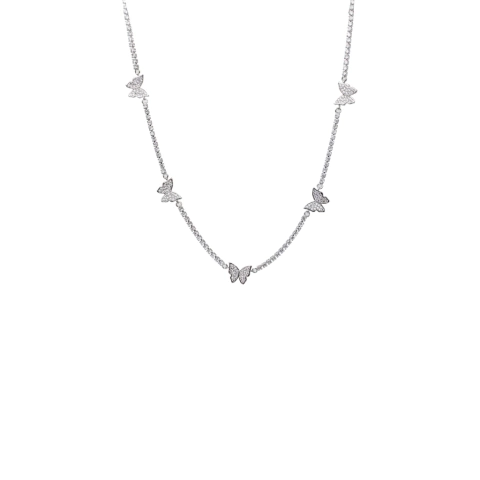 Brillá a toda hora con este hermoso collar confeccionado en aleación de metal y baño de oro u rodio con 5 mariposas decoradas con cristal Pavé.