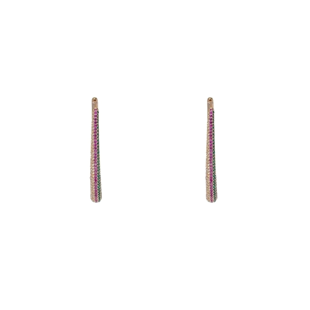Confeccionada artesanalmente poer reconiocidos orfebres de manera , estas inícrebles argollas aportarán luz y elegancia a tu estilismo.Realizadas con cristal micro pave y baño de oro o rodio, dependiendo el modelo, este fabuloso par de aros será tu elegido al momento de brillar.