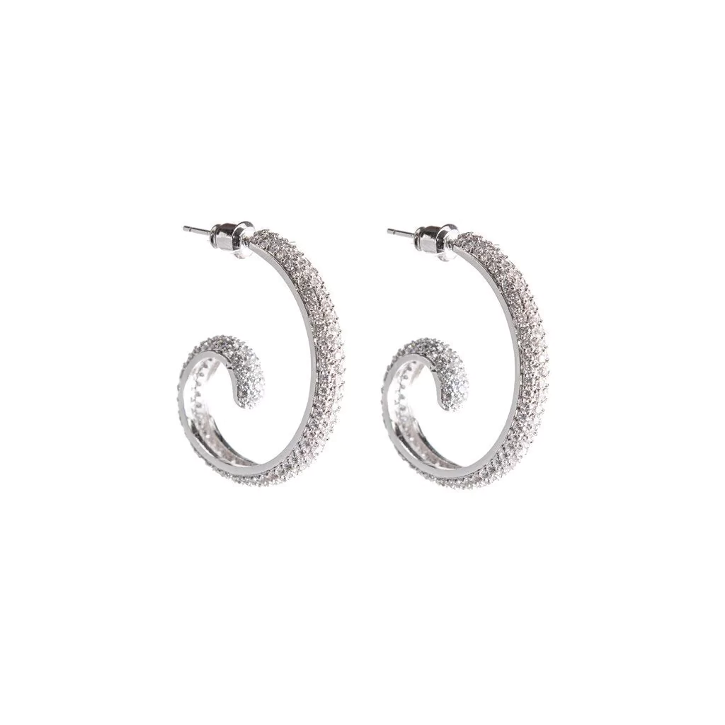 Elegante y atemporal, la refinada silueta de estos aros en forma de espiral esta decorada con cristal Pavé. Su diseño con baño en tono oro rosa o rodio, es perfecto para enaltecer cualquier look.