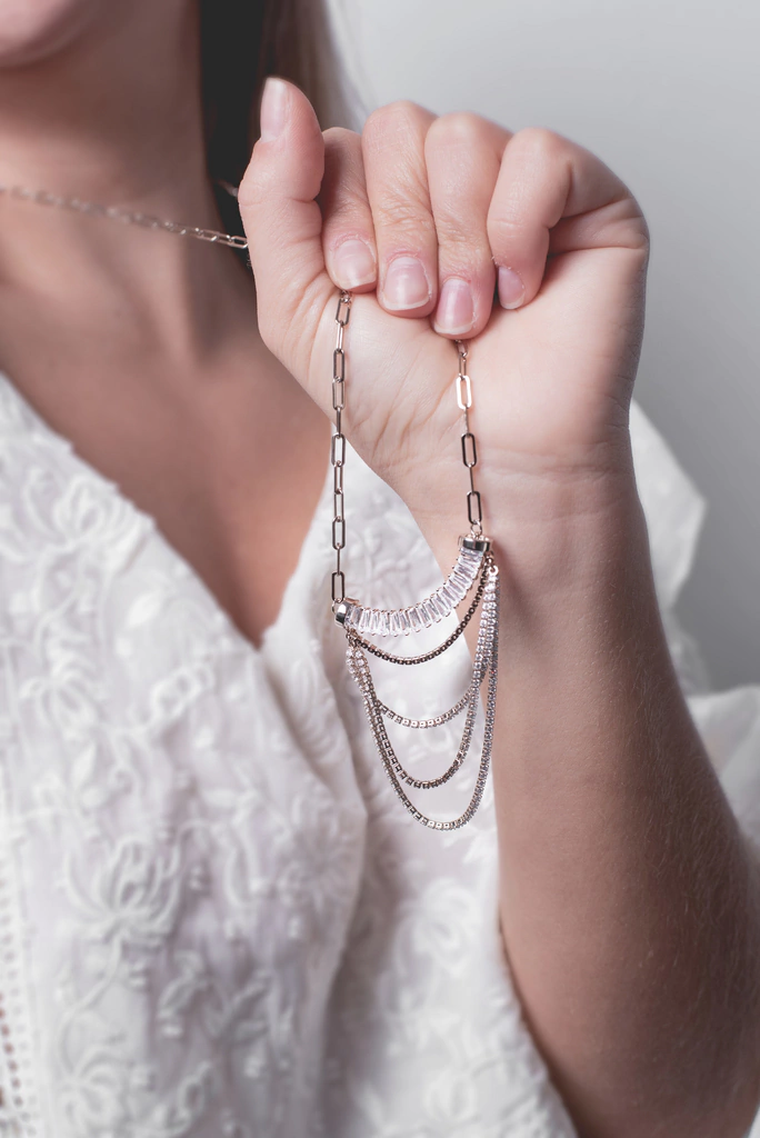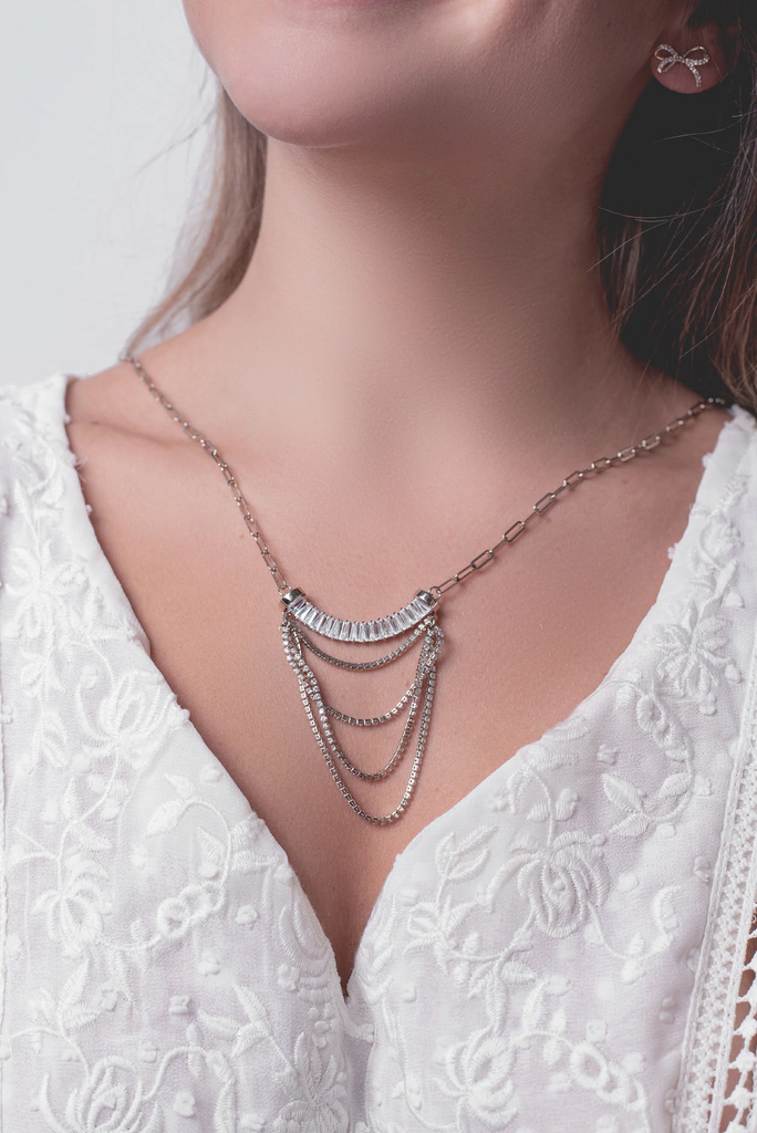 Este collar combina una silueta clásica con un toque moderno mientras que los resplandecientes cristales añaden ese brillo único del cristal Zirconia Un conjunto de exquisitos detalles crea un look impresionante, perfecto para quienes desean hacer un regalo considerado o para realzar tus impresionantes atuendos de noche.