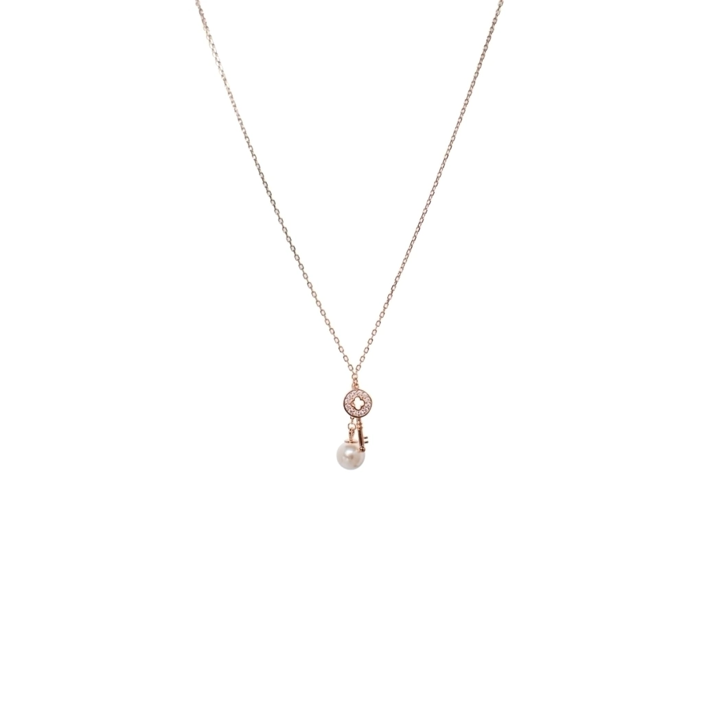 Soy el colgante más buscado, cuent con un diseño de dos dijes, uno con formato de llave el cual posee un aplique de Micro Pavé Swarovki y el otro con de perla Swarovski.