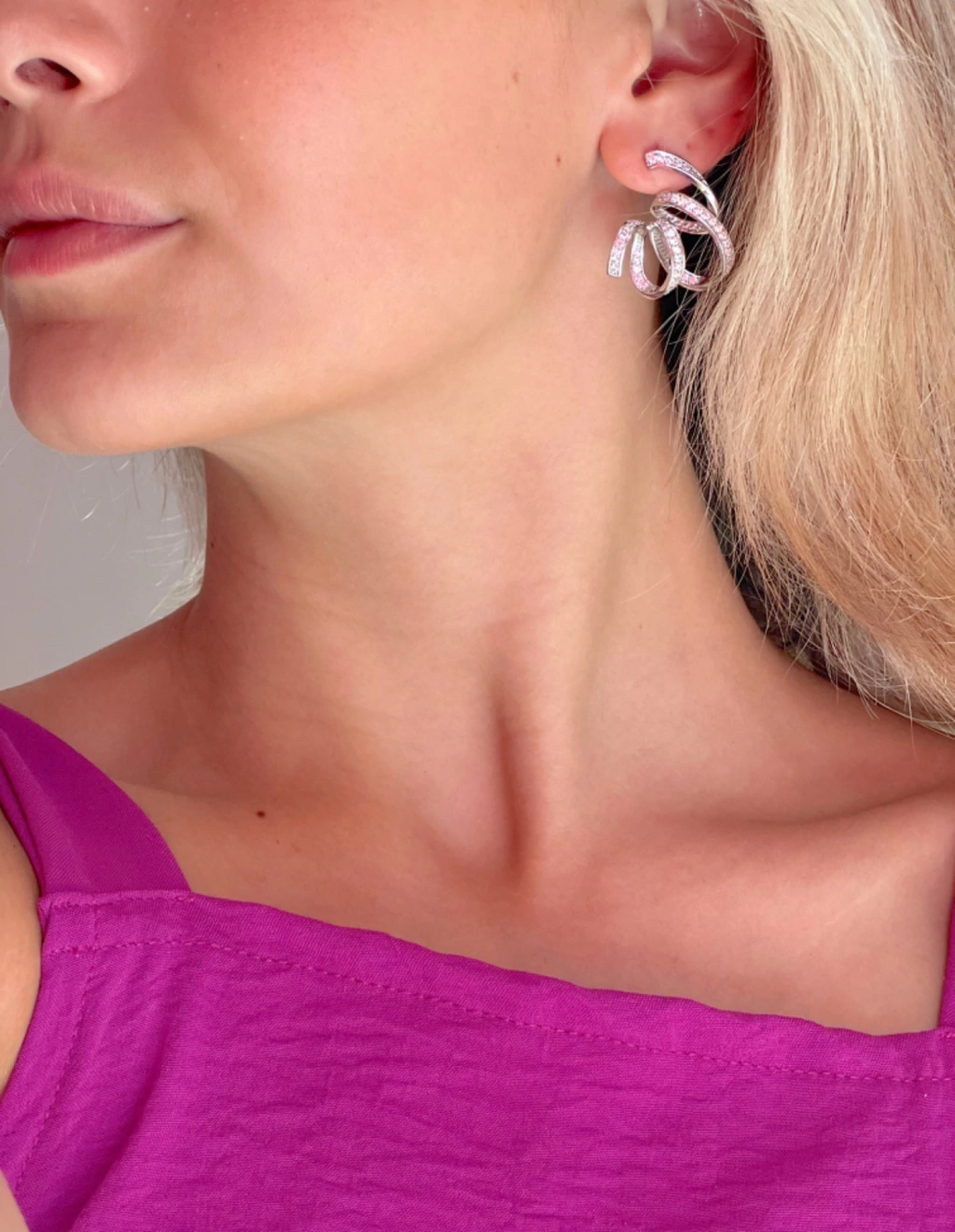 Si amas los aros de diseño este es un imprescindible en tu joyero. Confeccionado con cristal Pavé y aleación de metal con baño de rodio, su diseño elegante y distinguido lo usarás con distintos outfit para crear un look de tendencia