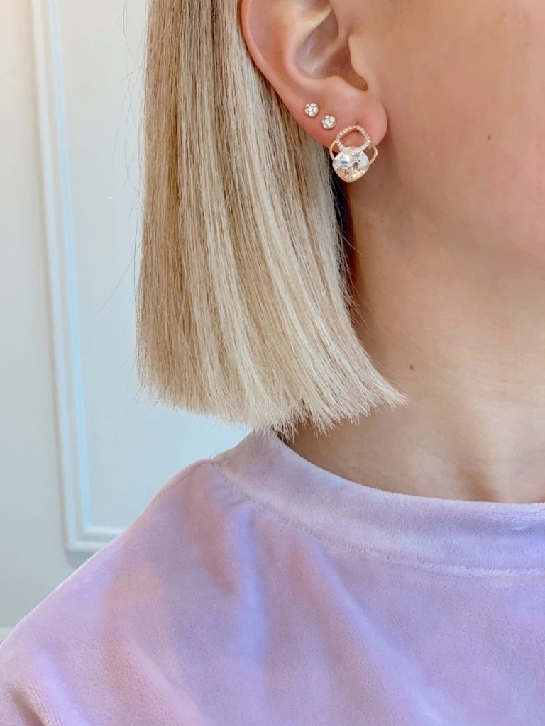 Sumanos un nuevo diseño a nuestros Clásicos Bonnie... Un cristal Swarovcki imponente en el centro y a su alrededor lo acompañan miltuples Cristales Pavé.