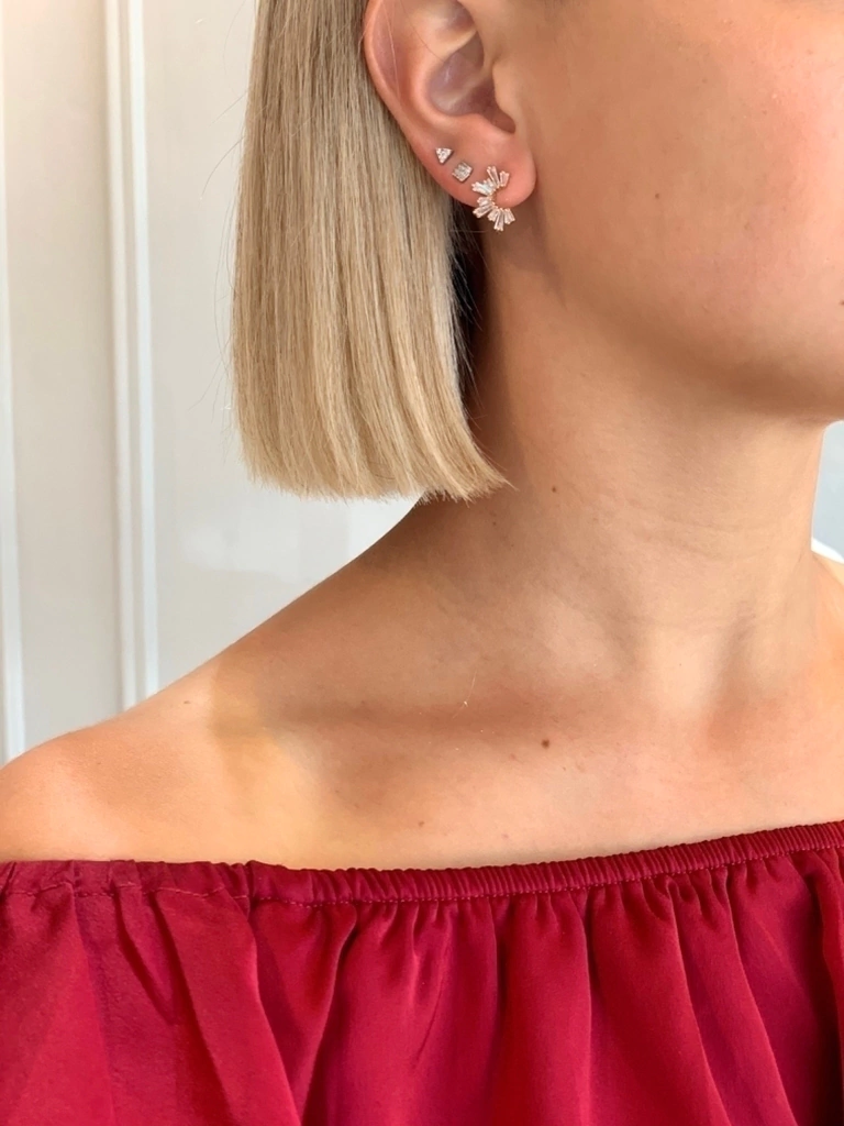 Este par de pendientes de Bonnie se distingue por sus piedras delicadamente talladas . Cada pendiente destaca gracias a sus piedras de forma de medio circulo. Una forma excelente para realzar tus looks de diario.